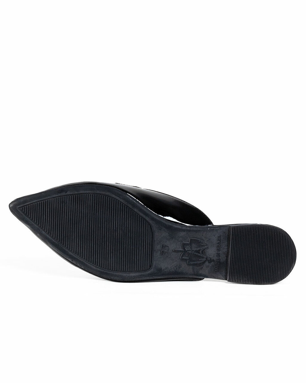 Este par de flats apresenta um design slip-on com uma textura preta que lembra pele de serpente. Com um bico fino, os sapatos têm uma silhueta moderna e elegante. A palmilha em cor nude contrastante possui um pequeno emblema, possivelmente o logo da marca, próximo ao calcanhar. O número de referência 12088 indica que este é um modelo específico ou uma linha de produtos. Estes flats são uma escolha interessante para quem busca conforto e estilo, fazendo uma declaração sutil